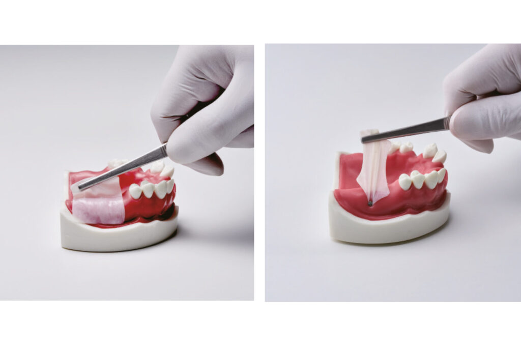 – Idealna do: zachowania wyrostka zębodołowego, augmentacji zębodołu, sterowanej regeneracji kości (GBR), innych procedur stomatologicznych i chirurgicznych, w których kluczowe jest niezawodne osadzanie membrany.
