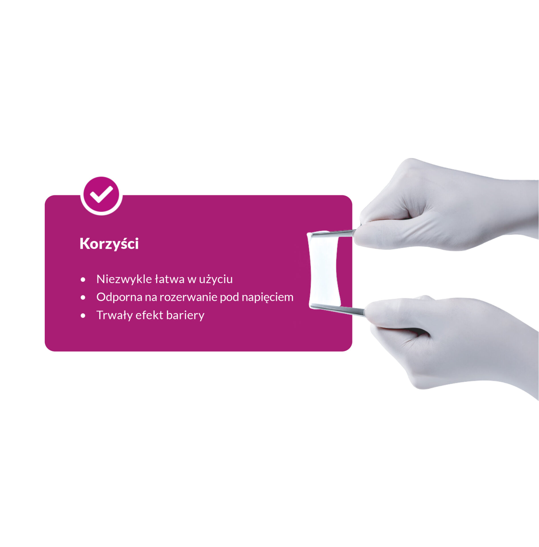 – Wysokie parametry wytrzymałości na rozciąganie zapobiegają rozdarciu lub pęknięciu podczas aplikacji, zapewniając stabilne i kontrolowane umieszczenie membrany.